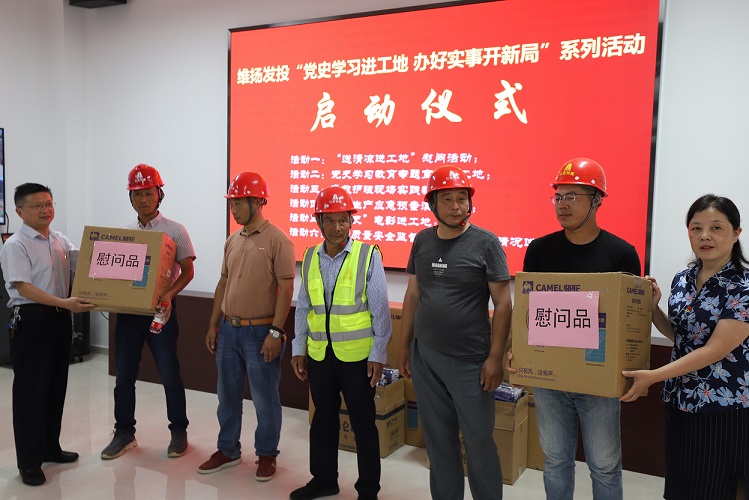 本次活動共有五項議程:“黨史學習進工地辦好實事開新局”系列活動啟動儀式;進行維揚發(fā)投現(xiàn)場教學點揭牌儀式;進行泰和佳園項目質量安全監(jiān)督員聘任儀式;進行維揚發(fā)投志愿者服務隊授旗儀式;開展“送清涼進工地”慰問活動。